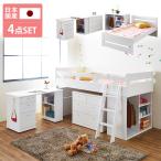 このシステムベッド4点セットは、国産の安心品質を誇る家具です。ベッド、デスク、チェスト、シェルフ、そしてハシゴがセットになっているため、これ一式でお子さまの学習環境と収納スペースをしっかり確保できます。特にホワイトの鏡面仕上げが美しく、お部屋を明るく清潔感のある空間に演出してくれるのが嬉しいポイントです。